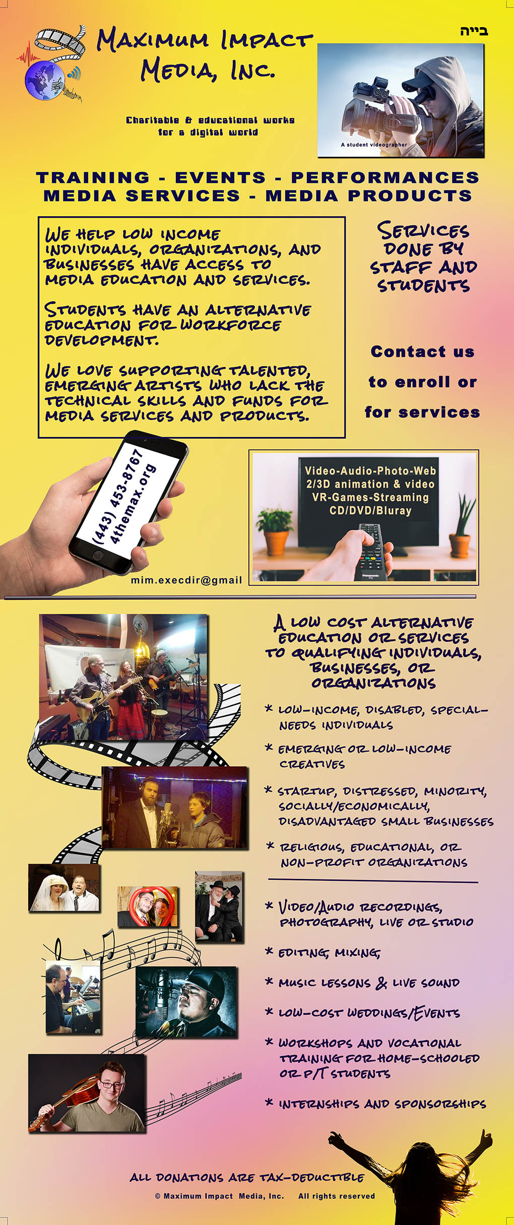 We help individuals, organizations, and businesses of limited resources have access to media education and services.
